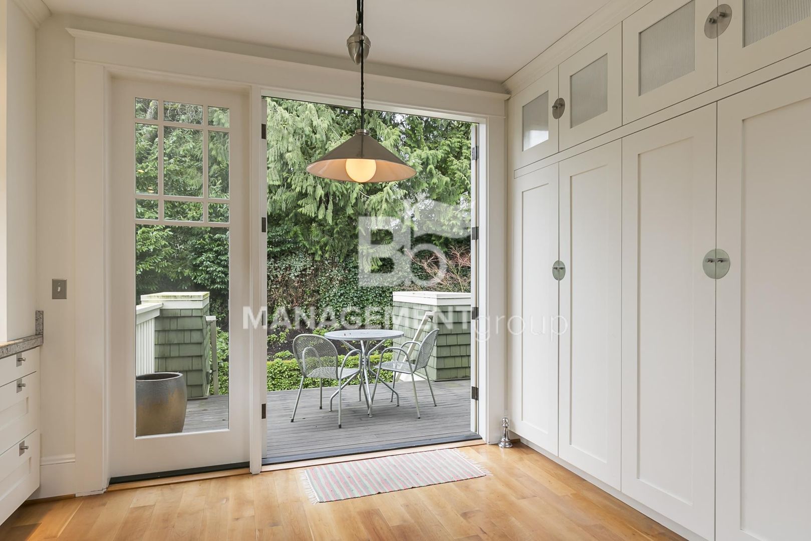 Short distance to Ainsworth School, the bus for West Sylvan and Lincoln school districts and to Stroheckers Park. Unbeatable location with a short drive to NW 23rd the Pearl District or the city center. Three levels redesigned for efficient living with a large light-filled dine-in kitchen with Wolf range, opening up to a beautiful teak patio for indoor/outdoor entertaining. Favorite feature for all ages is the maple-floored ball court for basketball, tennis, ballet in the 1500 sq. foot fully lit open plan basement. Includes media area complete with TV and sound surround and wool carpeting throughout. Main level has been recently painted and fir flooring refinished. Premium fixtures and fittings throughout. Large master bedroom with walk-in closet and ensuite bath. Three bedrooms and bathrooms. Lovely lush enclosed garden and lawn, and parking for two cars. Easy upkeep and plenty of space!