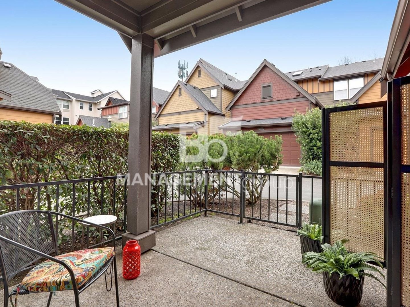 Bright & Beautiful ground level corner unit condo located in Stonewater at Orenco. Large gated patio. Open floor plan concept. Brazilian cherry hardwoods, plush new carpet, new light fixtures & freshly painted walls. Kitchen features gas range, pantry and new Kohler sink w/gooseneck valve. Master suite includes full bath with double vanity sinks and spacious walk-in closet. Walkable to Max. Minutes to Intel, NIKE, HWY 26, Orenco Station.