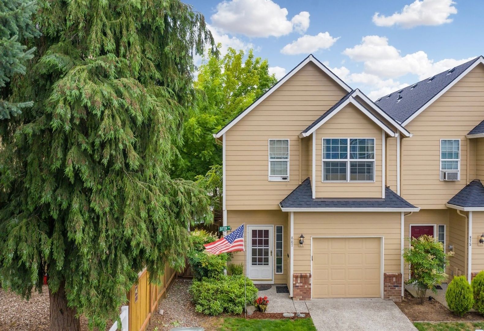 Beautiful Beaverton End-Unit Townhome. Open floor plan with private fenced patio and pergola. Entertaining is easy in the light-filled open kitchen, living and dining areas. Upstairs the spacious master features vaulted ceilings and huge windows with walk-in closet and private bathroom! Parking in garage and driveway. Fantastic location. Easy freeway access and conveniently located near shopping centers.