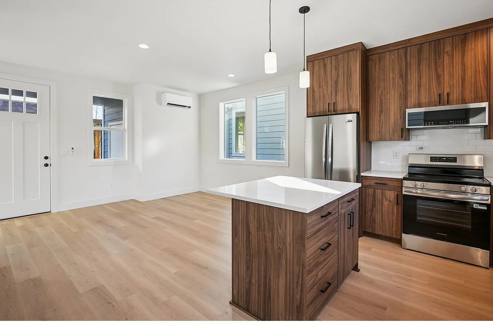 Welcome to your perfect blend of beauty and convenience at The Cottages! Bulit energy efficient and located near Washington Square with fantastic proximity to parks, and highways for ease. Featuring soaring ceilings and an inviting great room floorplan with large windows, these homes are filled with natural light. The living room flows effortlessly into the stylish modern kitchen, featuring gleaming quartz countertops, stainless steel appliances, and an eat-at island for all to enjoy! The smart layout allows for entertaining, work from home, and anything in between with a powder room on the main floor and two bedrooms upstairs, each with their own bathroom and vaulted ceilings. The perks are endless, as each unit comes equipped with its own parking spot, private enclosed storage unit, and back patio with a yard ready for your vision!