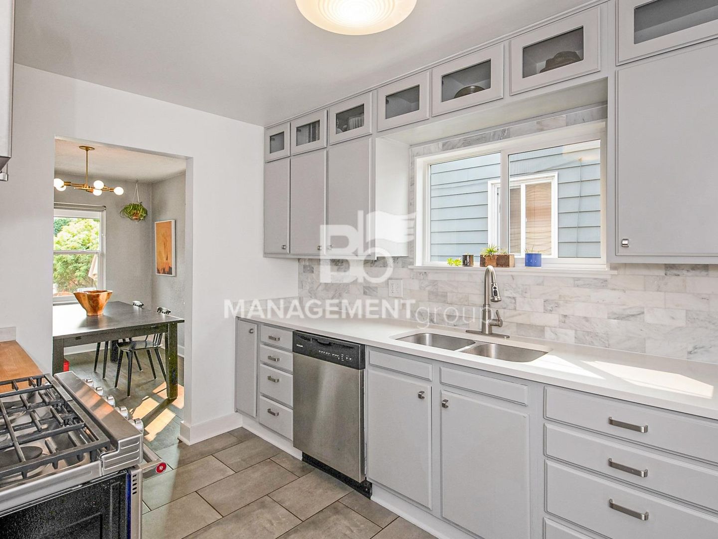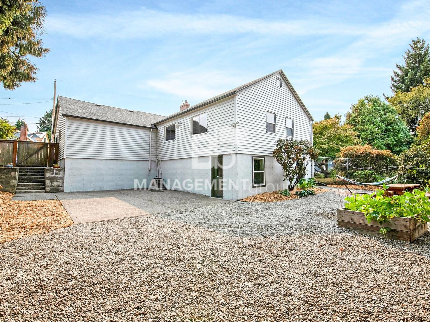 Concordia daylight ranch. Versatile floor plan with Schoolhouse Electric fixtures, hardwood floors, fireplace, built-ins, and fresh paint. Kitchen featuring stone/butcher block countertops and new stainless appliances. Daylight basement with exterior access. Spacious backyard with new shed and raised beds! Walking distance to Fernhill Park & Kennedy School.