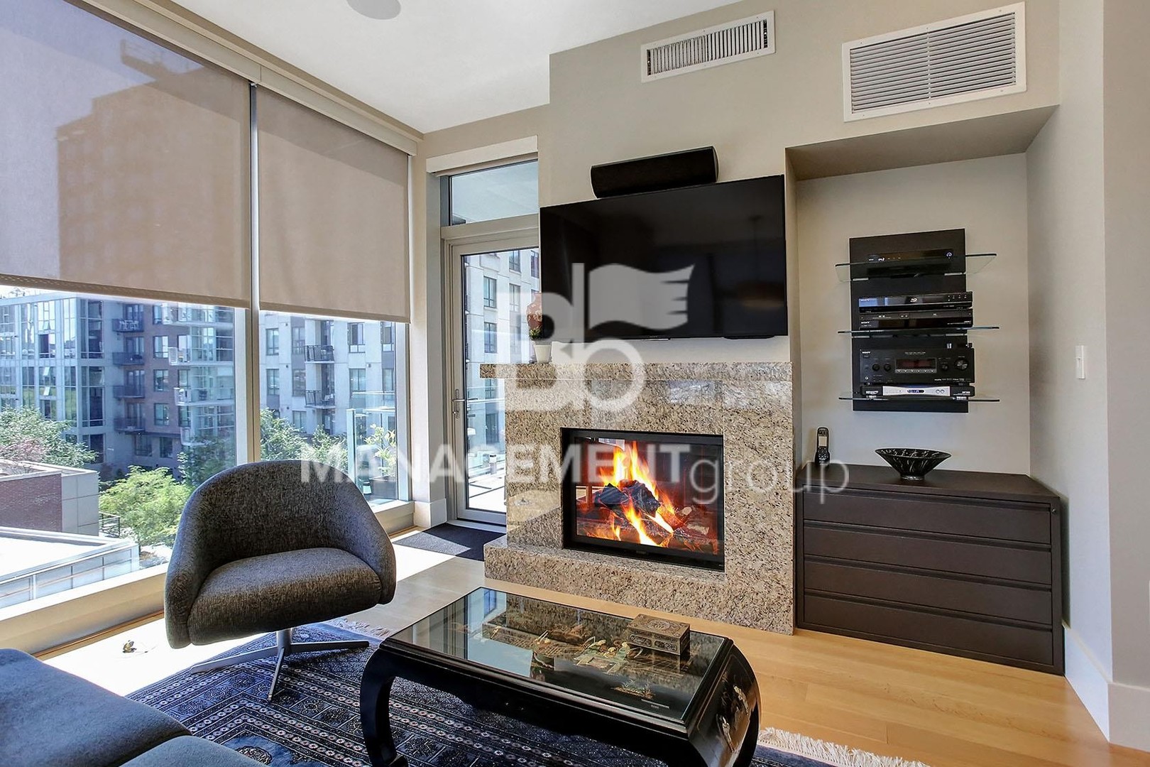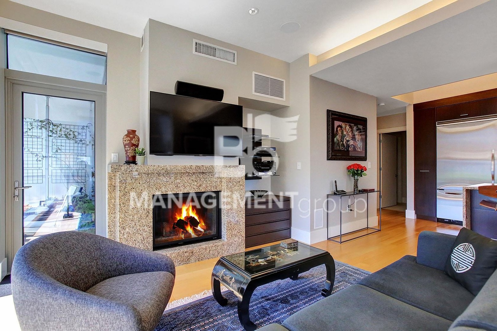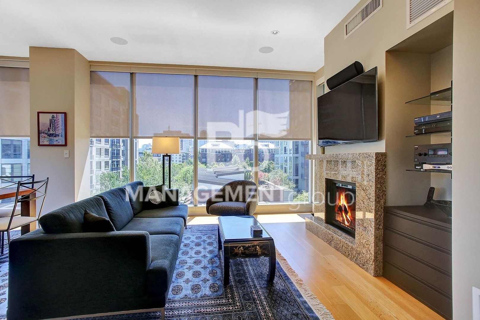 Immaculate modern design with hardwood, granite, and travertine. Amenities include motorized window shades / dual shades, theater surround sound, gas fireplace, professional Viking appliances, jetted bathtub, spacious walk-in / built-in closets, balcony gas outlet, and large storage unit. 24/7 concierge and fitness center, private wine cellar, library, conference room, expansive garden, guest suites, and secure underground parking!